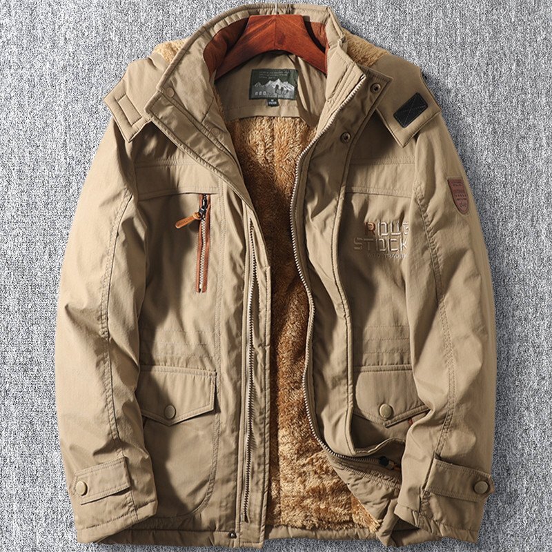 > 新品 大きいサイズ 極暖 中綿ジャケット 裏起毛 防寒 フード取り外し可能 防風 暖かい 多ポケット メンズ 冬服 コート キャメル T8153-3XL