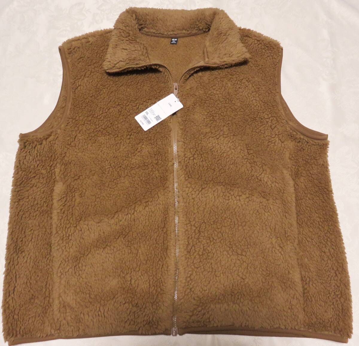 > 未使用タグ付 ユニクロ ライトボア フリース ベスト ブラウン WOMEN XXL/3L ジップアップ 防寒 アウター 上着 部屋着 ルームウェア UNIQLO