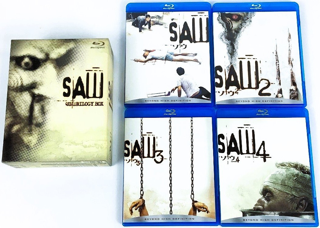 - 4作品★ソウ 1~4 クアドリロジーBOX★日本限定生産版4枚組/4作品ブルーレイ●監督:ジェームズ・ワン●脚本:リー・ワネル●トビン・ベル●