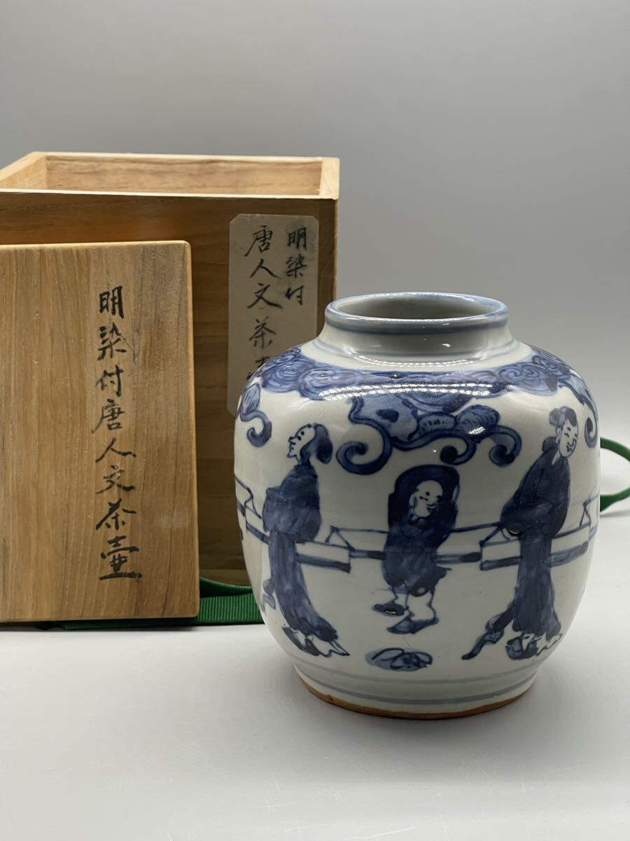 - 古中国★明時期★唐人文 染付壷 唐物 茶道具 時代