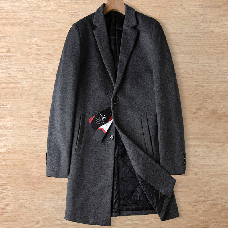 > Y683-L程度 グレー 新品DCKMANY ウール混 テーラードコート チェスターコート ミドル 中綿 秋冬 防寒 フォーマル アウター メンズ