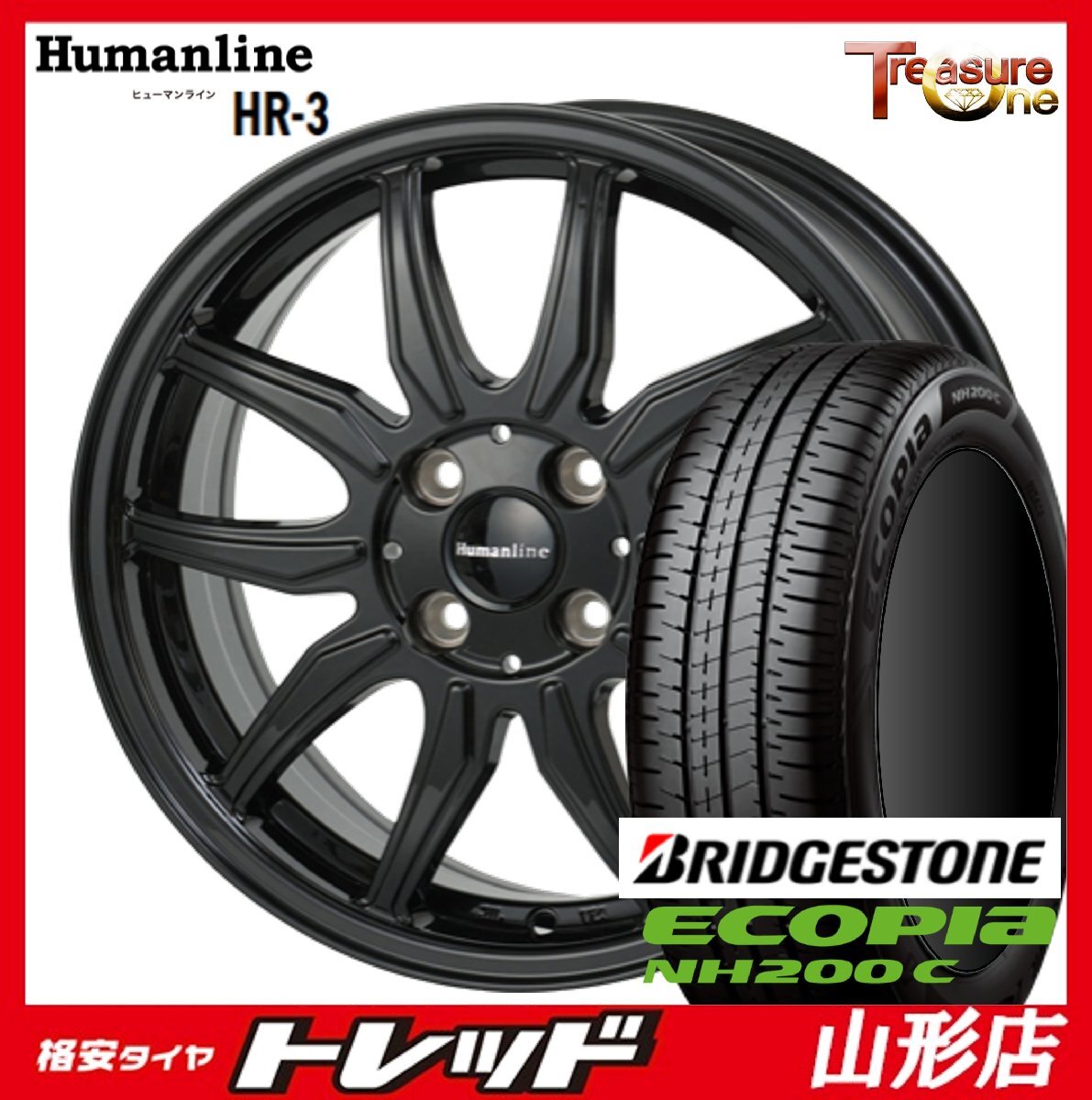 - 数量限定 山形店 新品タイヤホイール4本セット ヒューマンライン HR-3 13インチ4.0j 4H100 +43 BK ブリヂストン NH200C 155/65R13 2022年製