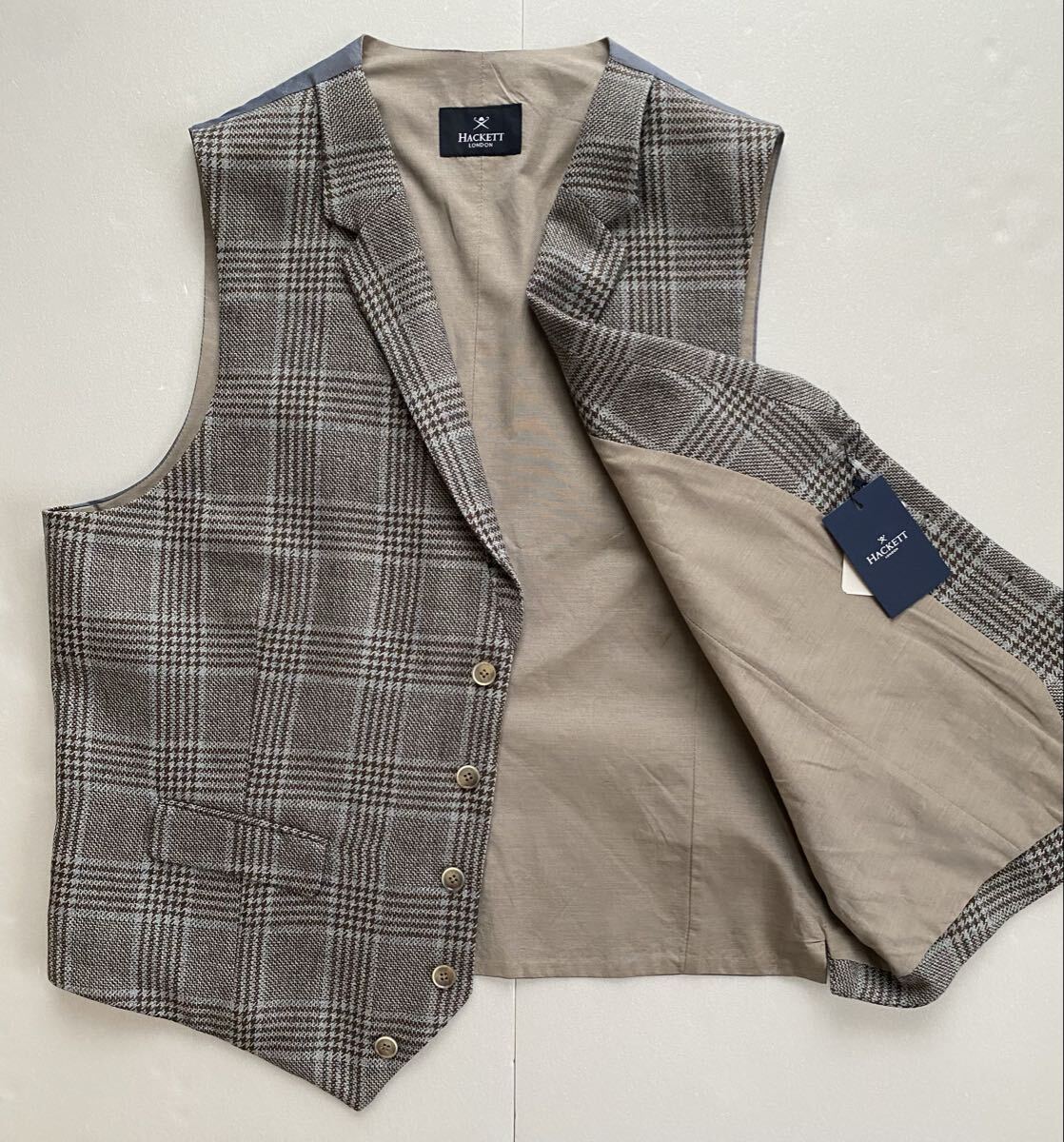 > 新品未着用品◆ハケットロンドン HACKETT LONDON ウールリネン チェック柄 ジレ ベスト メンズ44 (XL位) 定価:4万