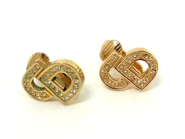 - 1円 ChristianDior ディオール ヴィンテージ CDロゴ ラインストーン クリップ式 イヤリング アクセサリー レディース ゴールド系 FS6162