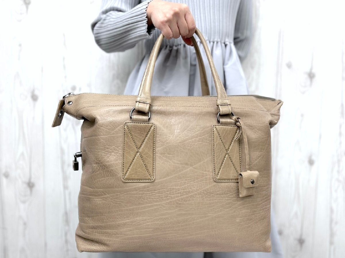 - 極美品 BOTTEGA VENETA ボッテガヴェネタ カデナ鍵付 トートバッグ ハンドバッグ バッグ レザー グレージュ A4収納可 メンズ 91761Y