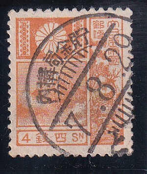 - 富士鹿4銭(新版) 櫛型印 貯金局構内 7.8.29