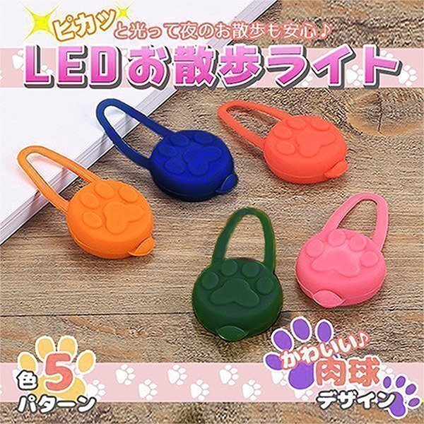> ★LED お散歩ライト ブルー 肉球 シリコン 犬 猫 ペット 電池式 光る セーフティ 事故 防止 首輪 バッグ 自転車 ランニング 安心 点灯 点滅
