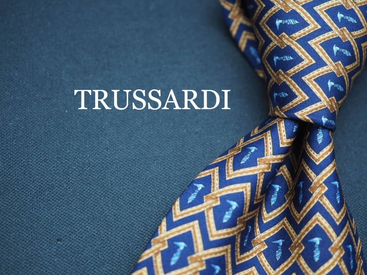 > 美品【TRUSSARDI トラサルディ】 G1299 ネイビーブラウン系 SILK ブランド ネクタイ 古着 良品 転売 仕入