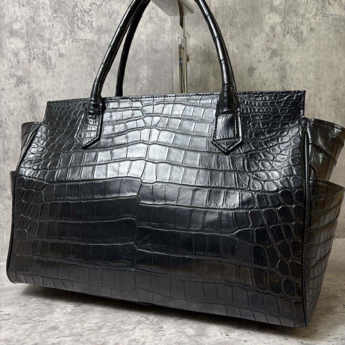 > 定価110万/極美品●リアルクロコダイル トートバッグ マットクロコ センター取り 肩掛け ショルダー 鰐革 ワニ革 大容量 ビジネス メンズ黒