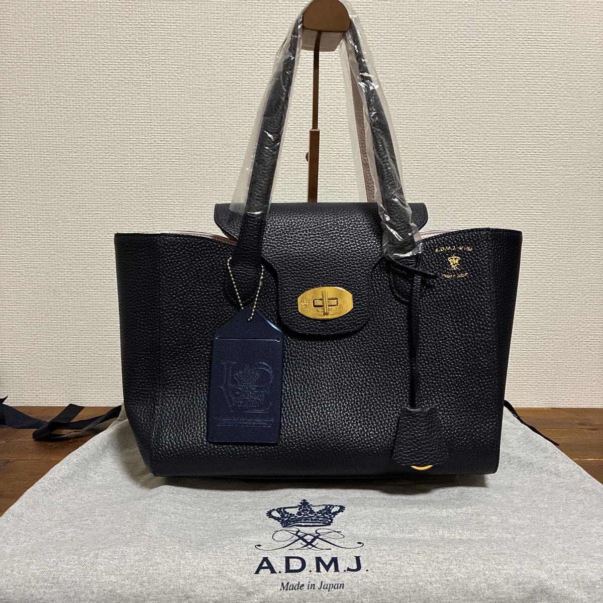 - 【美品】ADMJ エーディーエムジェイ 本革 レザー ターンロック ダークネイビー トートバッグ レザー A D M J