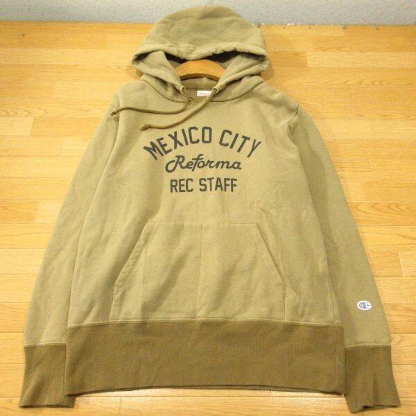 > ◎Champion チャンピオン 復刻 ランナーズタグ 後付け パーカー スウェット カレッジ 古着 アメカジ メンズ カーキ Mサイズ◆AA5038