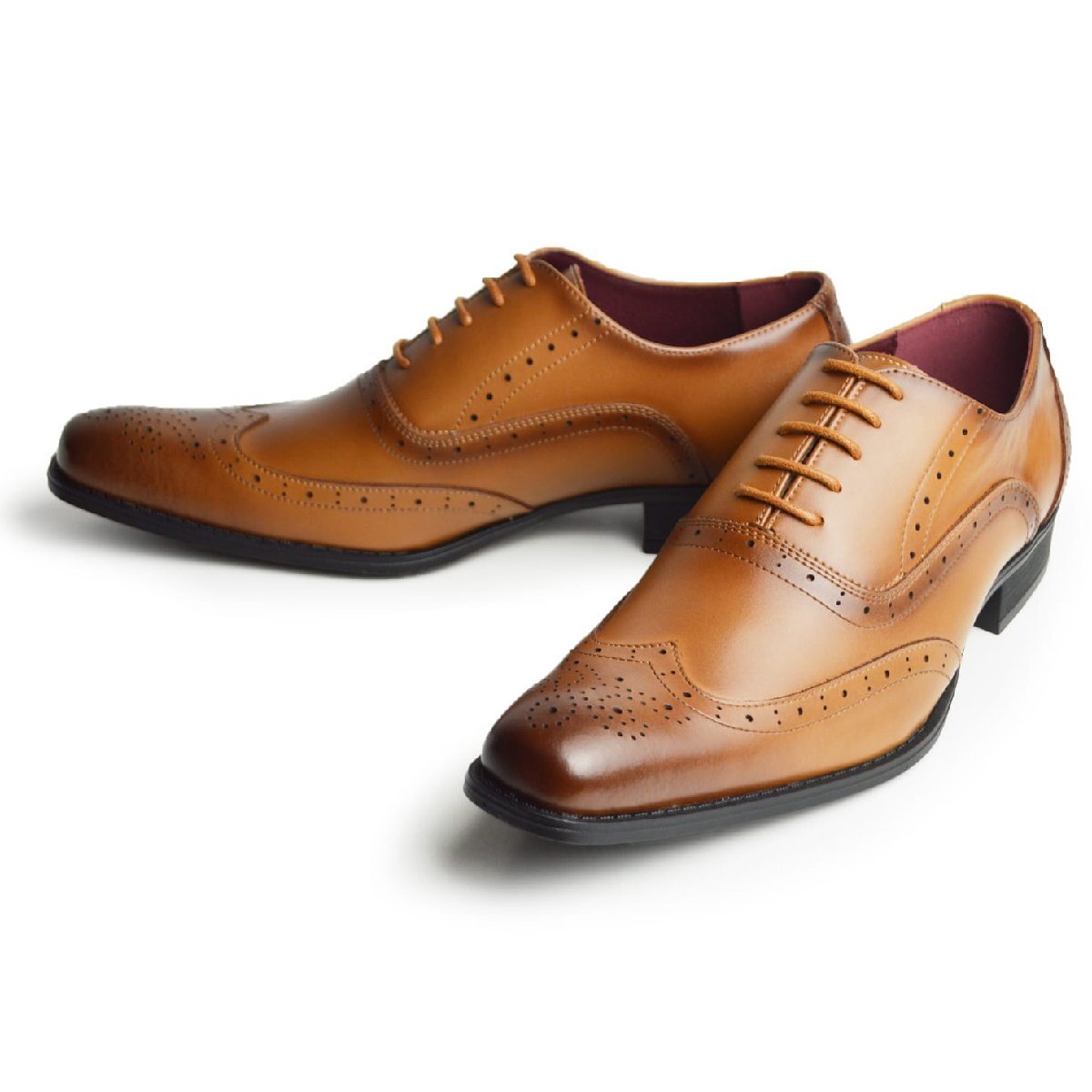 - 新品■26cm ビジネスシューズ 革靴 レースアップ 紐靴 ウィングチップ 脚長 スクエアトゥ ロングノーズ 2E 日本製 フォーマル 紳士靴