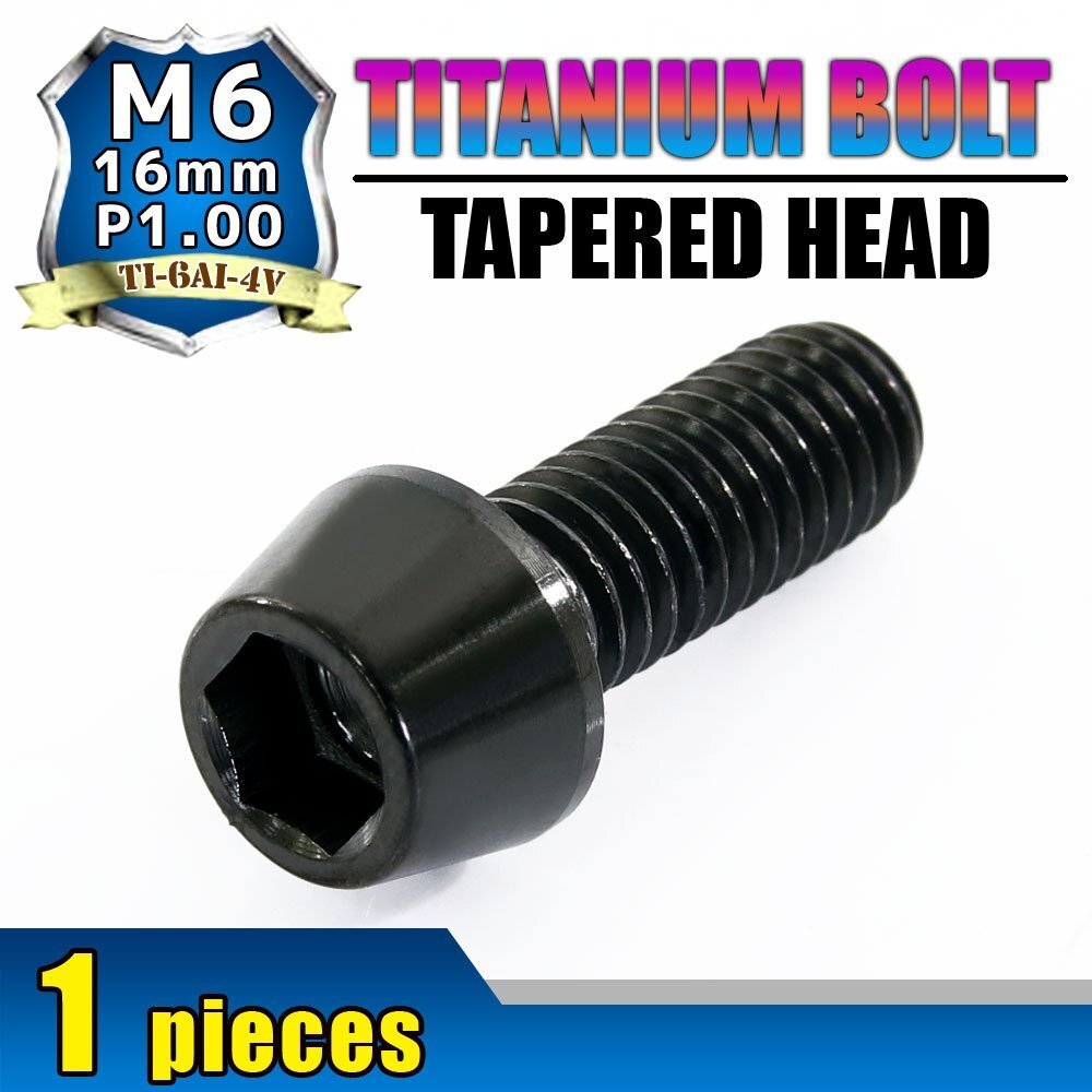 > メール便OK! M6×16 P1.00 チタンボルト 1本 6mm 16mm ピッチ1.00 ブラック テーパーボルト キャップボルト クランクケース バイク