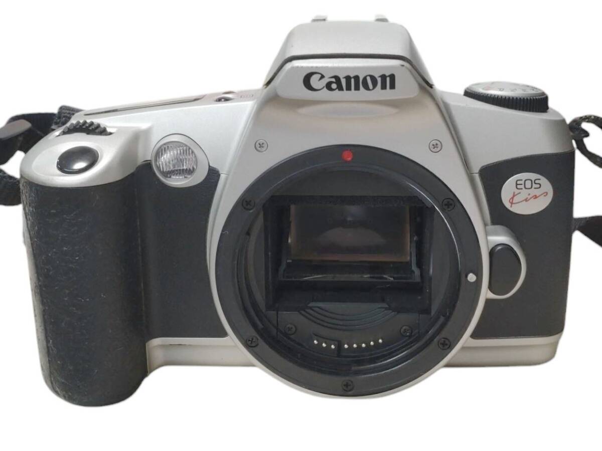 - 1円スタート ◎Canon New EOS Kiss BODY フィルムカメラ シルバー キャノン ボディ 本体 軽量 コンパクト AFセンサー搭載 一眼レフ