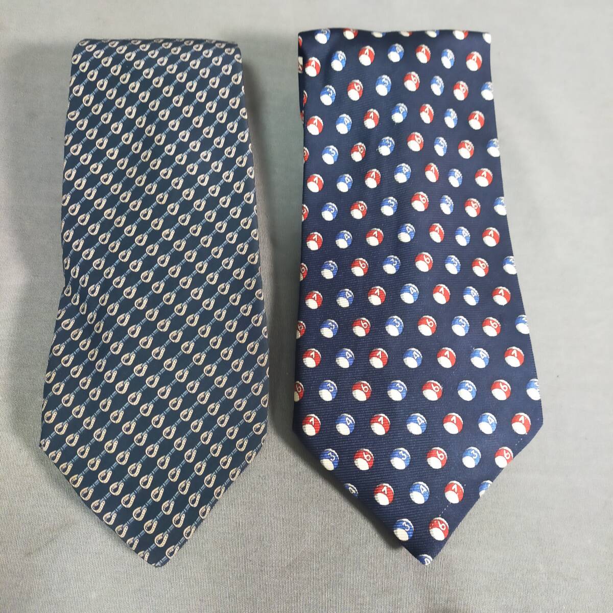 - 5711/10 GJ72417 CELINE セリーヌ ネクタイ ネイビー系 100%SILK おまとめ used 現状品