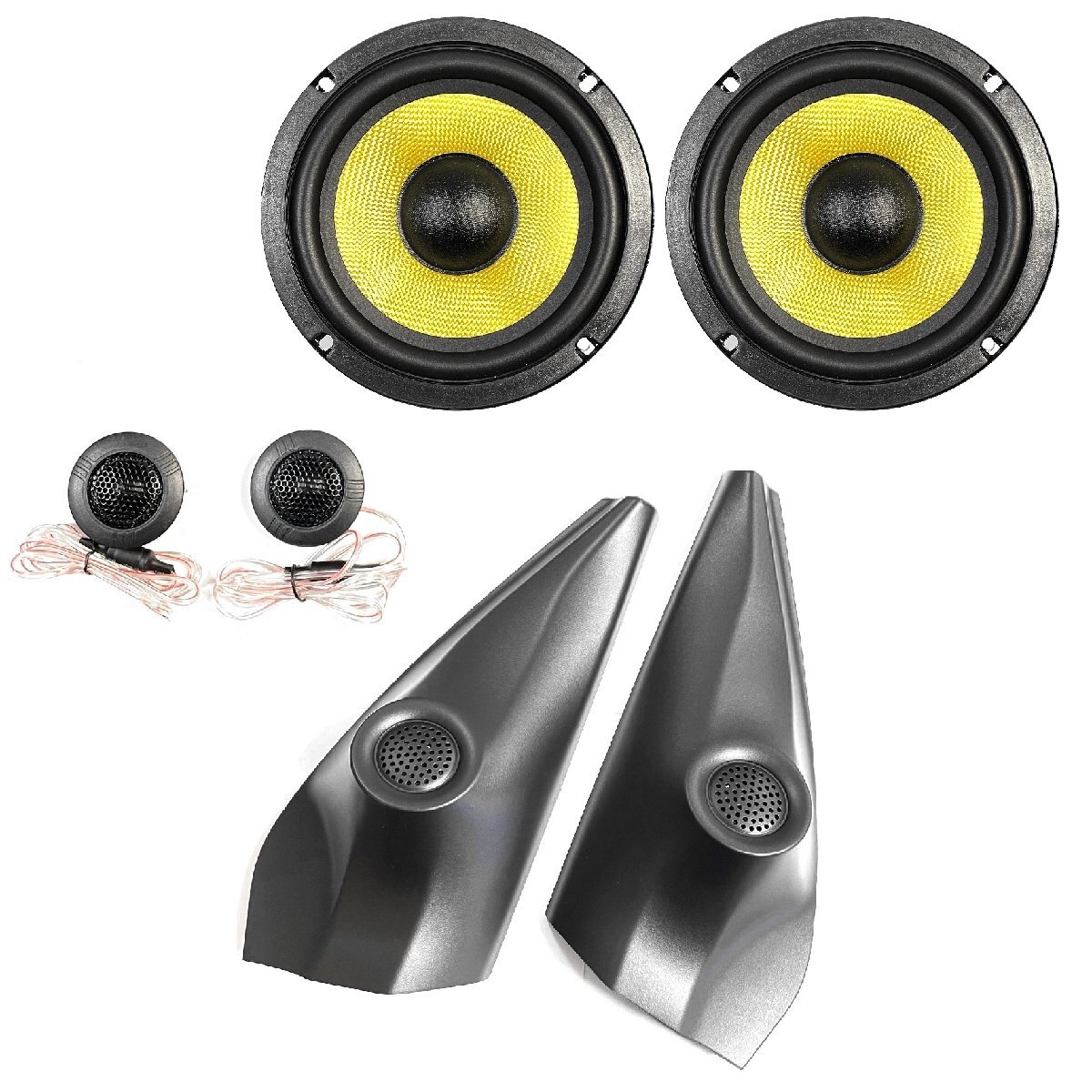 【商品内容】 スピーカー本体 2個 スピーカーステー 2個 専用ツイーターパネル 2個 ツイーター 2個(パネルに組み込んだ状態でお届けします) ハイパスフィルター接続済