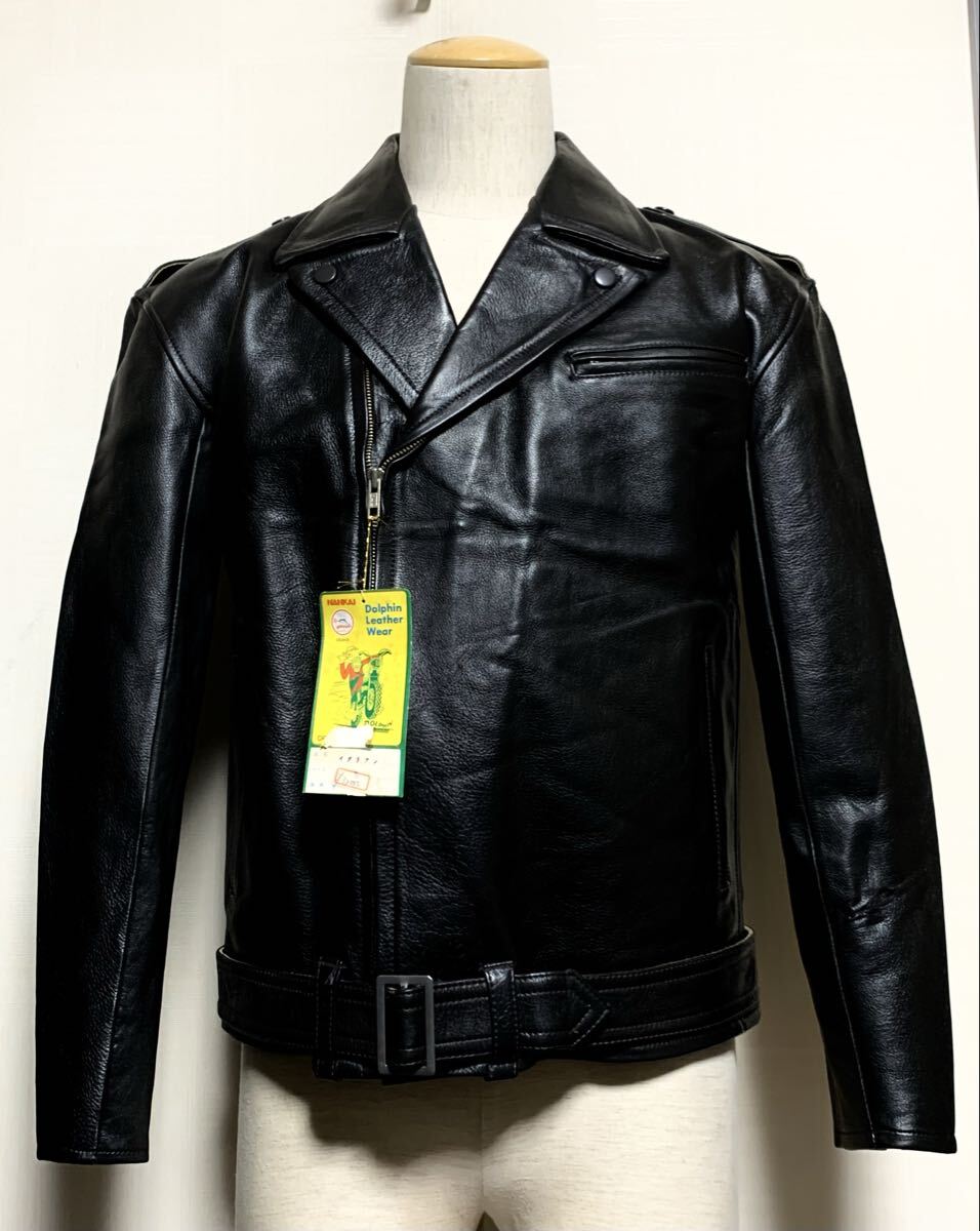 - 新品:NANKAI(南海部品).レザーダブル ライダース ジャケット LL(デッドストック/80s/昭和/旧車/当時物/肩50幅53バイカー/komine kushitani)