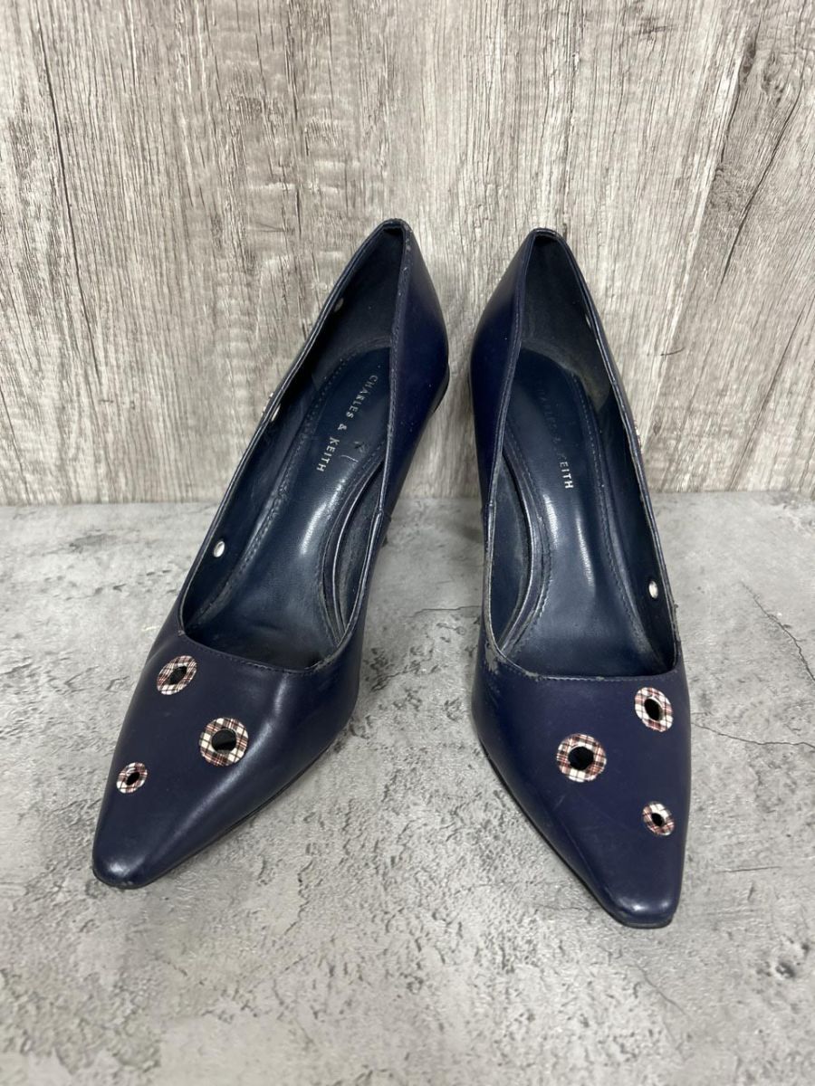 - CHARLES & KEITH チャールズ&キース タータンチェック柄 ハイヒール パンプス size23.5/紺 ■■ レディース レディース