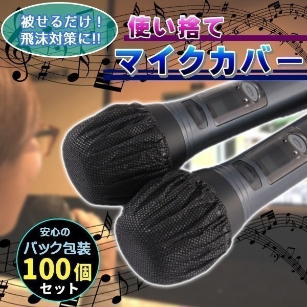 - マイクカバー ブラック 単色 100枚 カラオケ パック 包装 不織布 衛生的 使い捨て 抗菌 ウイルス対策 飛沫防止 【2枚入/50袋】合計100枚