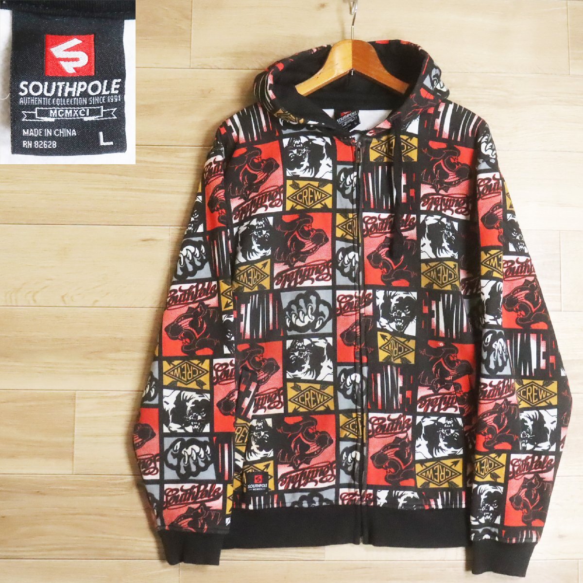 - B7S/O5.2-4 Southpole サウスポール 総柄 ジップアップパーカー スウェット フーディー ジャンパー ブルゾン メンズ Lサイズ