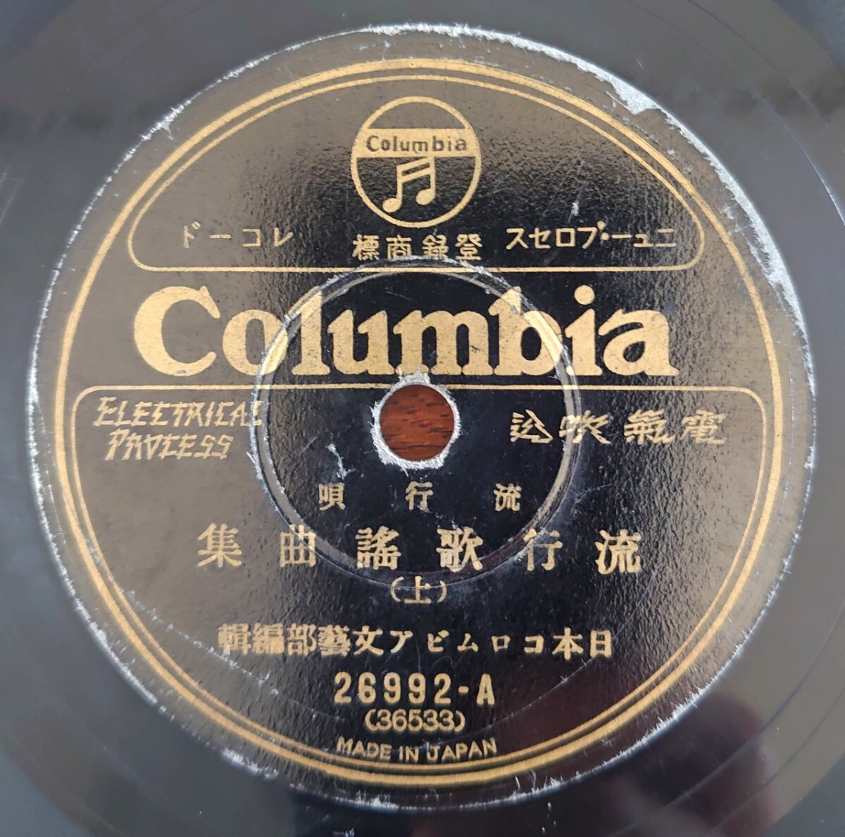 - 【SP盤レコード/薄ヒビ】Columbia 26992 流行唄/流行歌謠曲集(上・下)-流行歌謡集/日本コロムビア文藝編輯