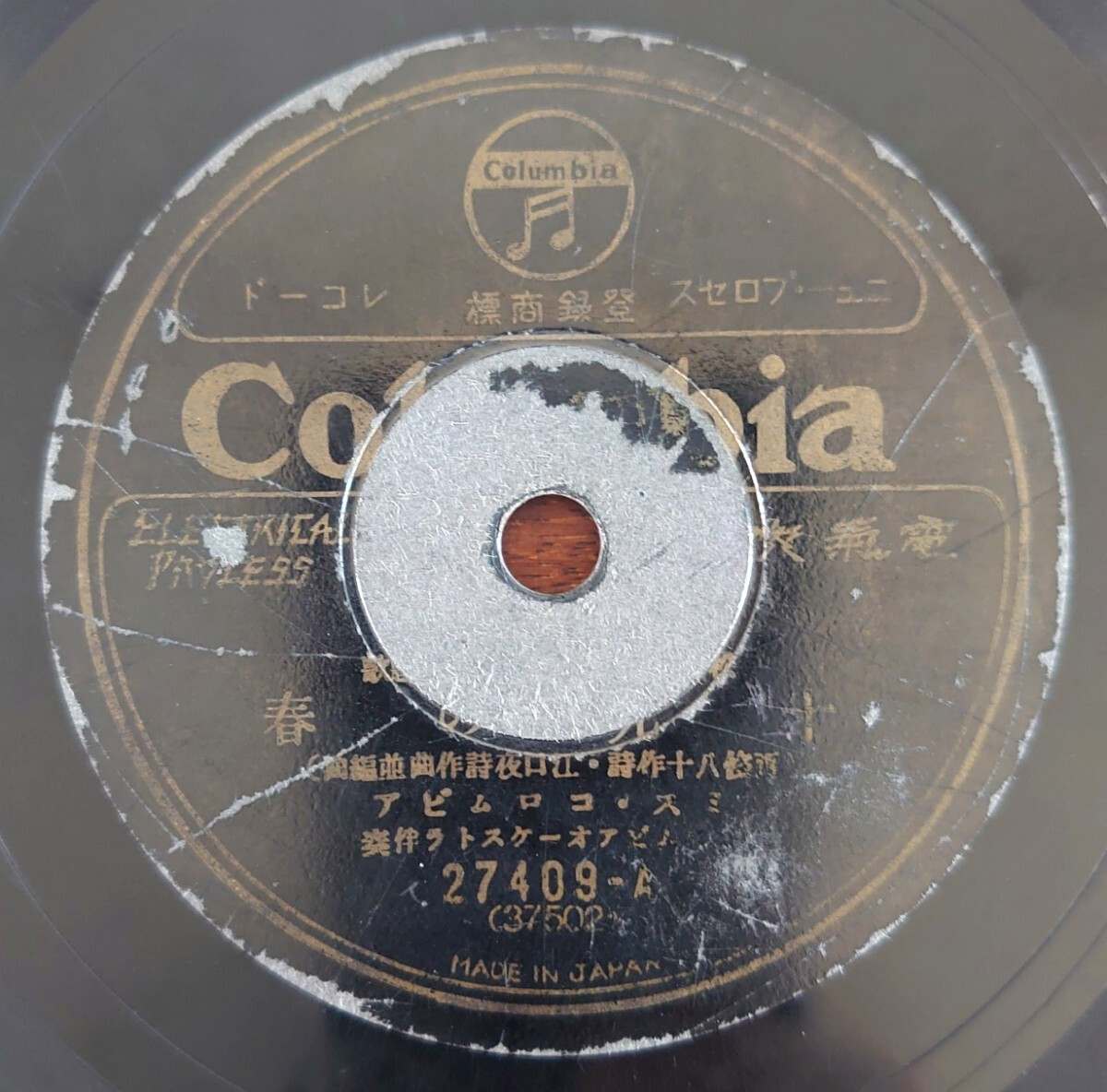 - 【SP盤レコード/縁小欠】Columbia 27409流行唄/松竹映画「十九の春」主題歌/同題 ミス・コロムビア/戀しき夢-恋しき夢 松原操