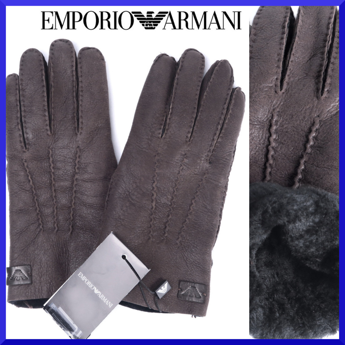 - 6万新品本物E,アルマーニEMPORIO ARMANI伊製【大人の色気漂う◎リアルムートン】イーグルロゴ入!!暖か◎羊本革レザー手袋グローブ/メンズ