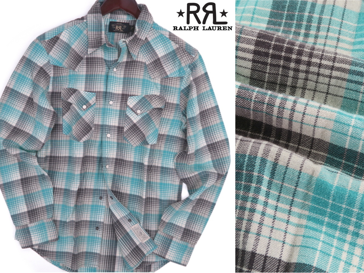 > 新品本物RRLダブルアールエルラルフローレン【ソフトな肌触りで年中重宝大人のチェック柄こなれ感】ウエスタンネルシャツ/メンズUS:XL=2XL