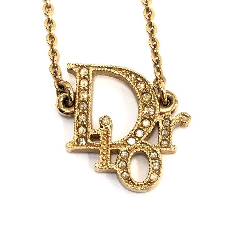 - Christian Dior クリスチャンディオール ロゴ ラインストーン ネックレス【DKAI5064】