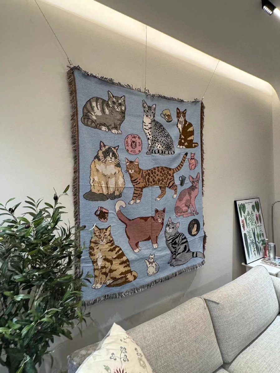 - タペストリー [ネコ] 油絵風 織り 置物壁掛け 西洋風壁掛け インテリア ウォールデコ カジュアルカーペッ