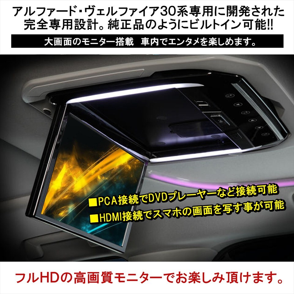> アルファード ヴェルファイア 30系専用 フリップダウンモニター 13.3インチ フルHD 高画質 HDMI 携帯画面投影 プレイヤー接続 自動彩度調整