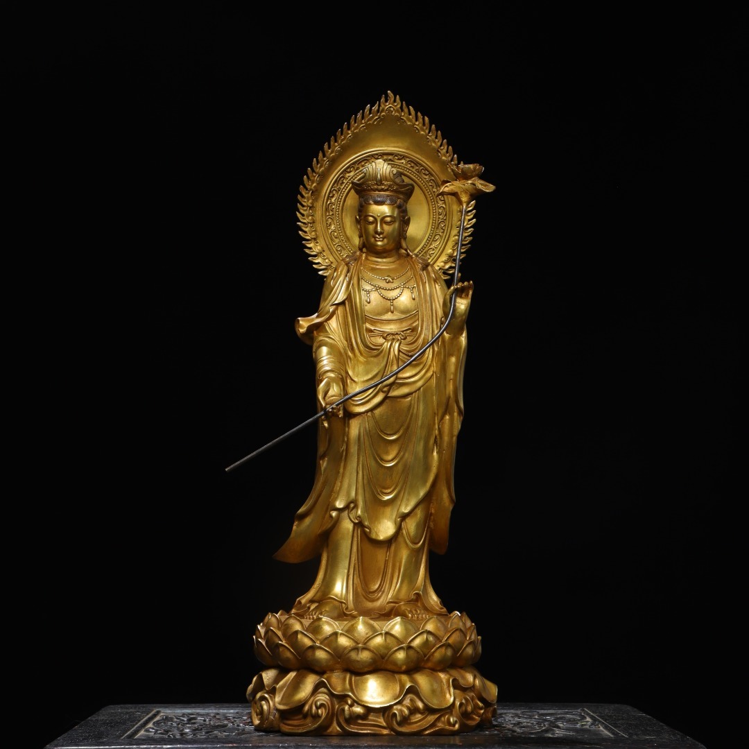 - 旧蔵 古銅彫 塗金 菩薩 佛像 古擺件 古置物 中国古玩 骨董品 時代物 稀少唐物