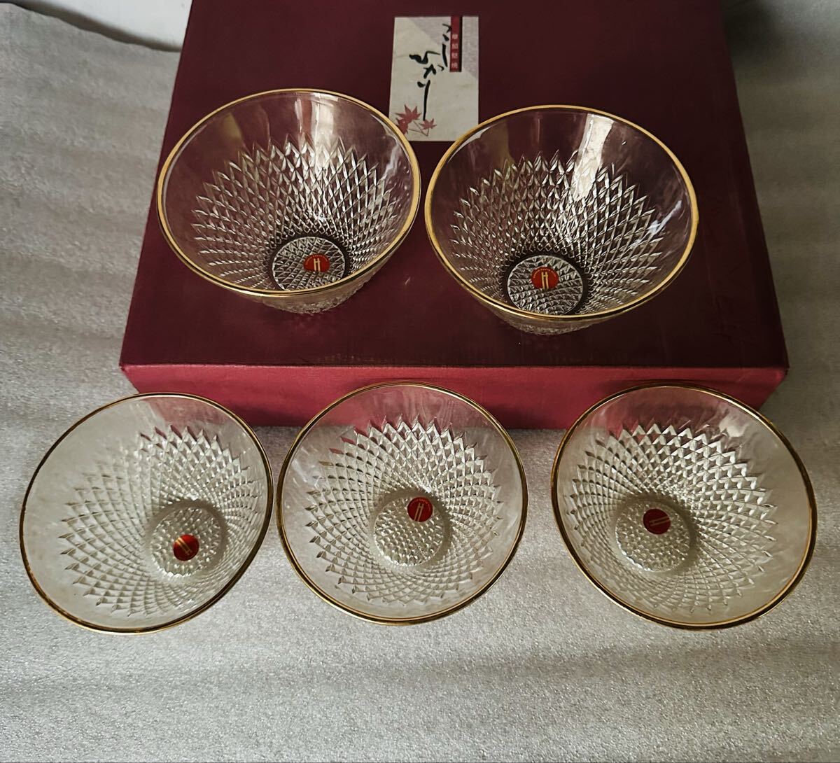 - 昭和レトロ HOYA クリスタルガラス デザートグラス 5客セット【未使用保管品】