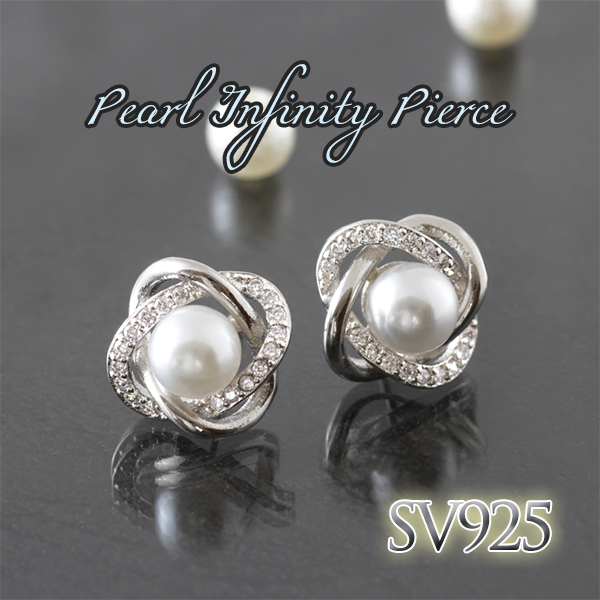 - パール ピアス レディース 真珠 ジルコニア シルバー 銀 プラチナ仕上げ フォーマル 上品 / SV925 CZダイヤ パールインフィニティピアス