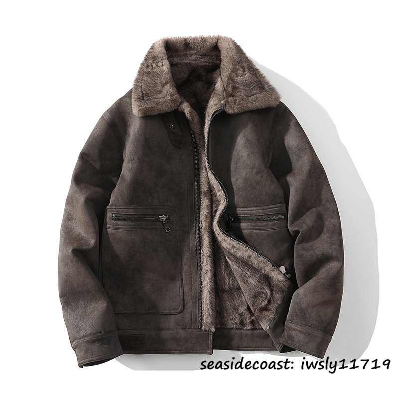 > 秋冬新品◆ムートンコート メンズ 裏起毛 厚手 防寒 暖かさ ブルゾン 上質 フライトジャケット パーカー アウター ファーコート 珈琲色 XL
