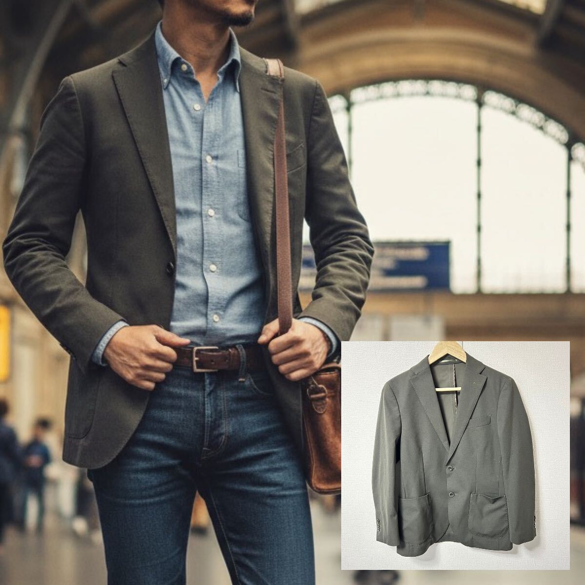 - 美品◎小さいサイズ◎【CHRISTIAN ORANI】クリスチャンオラーニ テーラードジャケット ブレザー シンプル カーキ メンズSS/Y37827YY