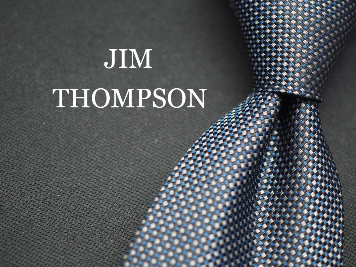 > 【JIM THOMPSON ジムトンプソン】 G1594 細身 ネイビー シルバー SILK ブランド ネクタイ 古着 良品 転売 仕入