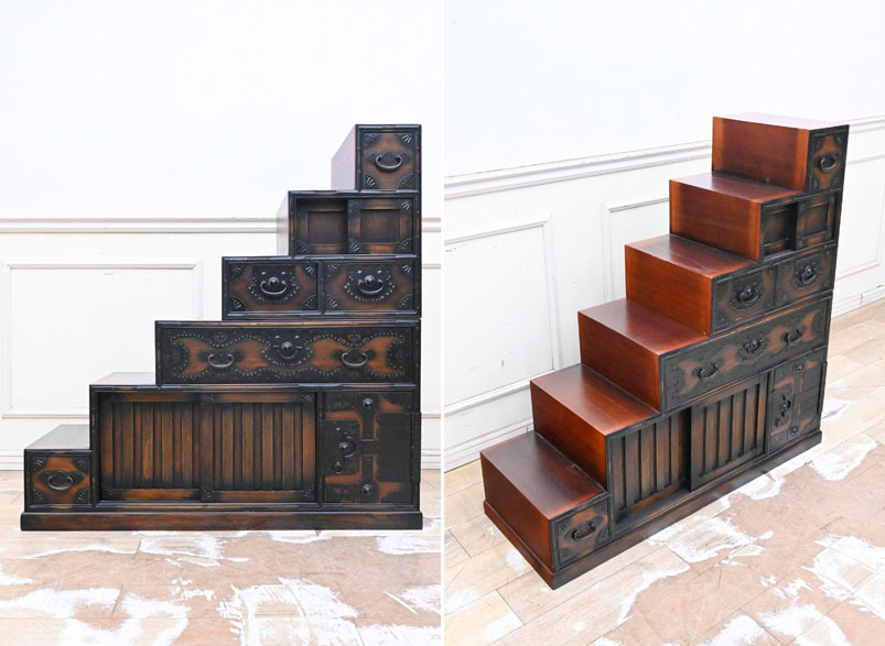 - GI30 大型 両面タイプ 重厚金具 階段箪笥 総無垢 時代箪笥 民芸家具 タンス 帳場箪笥 サイドボード 薬箪笥 飾棚 引出 仕切り 飾台