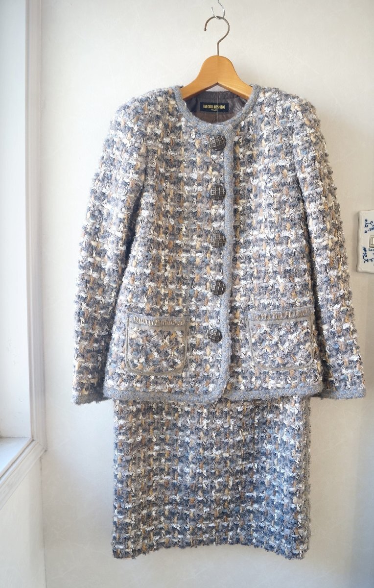 > ★HIROKO KOSHINO / ヒロココシノ *秋冬 ラメ混ツイードジャケット×スカート セットアップ スーツ /40* 古着のgplus広島 2511t2