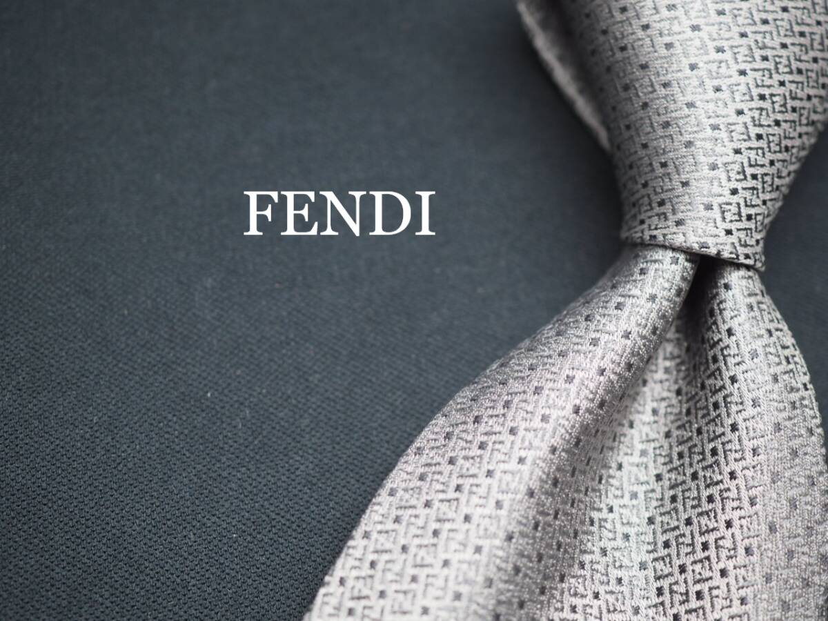 - 美品【FENDI フェンディ】 G1626 ロゴ グレーシルバー SILK ブランド ネクタイ 古着 良品 転売 仕入
