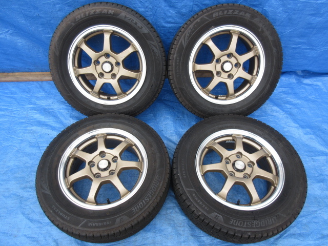 > ★社外アルミ 15インチx6J+50 5H-114.3 BS ブリザック VRX3 195/65R15 91Q 2021年式 残溝約5.5~6mm 引取可!
