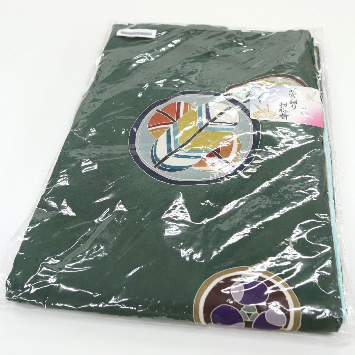 ※こちらのお品は、お仕立て上がりのお着物でございますので、商品到着後すぐにお召しいただけます。 お宮参り男の子用、祝着をご紹介致します。 こちらのお品には、長襦袢が付いております。 こちらのお品は、お仕立て上がりのお着物でございますので、商品到着後すぐにお召しいただけます。 ■サイズ■(実寸) 身丈:約99cm 裄:約46cm 袖丈:約56cm さらりとした正絹の生地は、深緑色のお色目でございます。 家紋調の模様が染められております。 格調高い印象に仕上がっております。 -状態・素材:表地:絹100% 裏地:ポリエステル100% 下着地:ポリエステル100% 下着裏:ポリエステル100%
