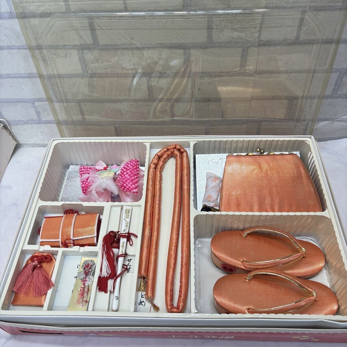 > 良品 七五三 かばん 鞄 草履 小物セット 古典柄 着物 髪飾り 帯留 扇子など 女の子 3歳/5歳用