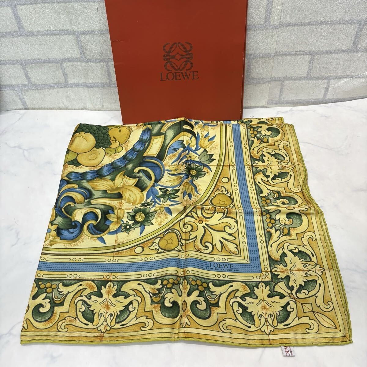 > 新品 未使用 ロエベ スカーフ シルク 絹100% LOEWE 88㎝×88㎝ 黄色 イエロー