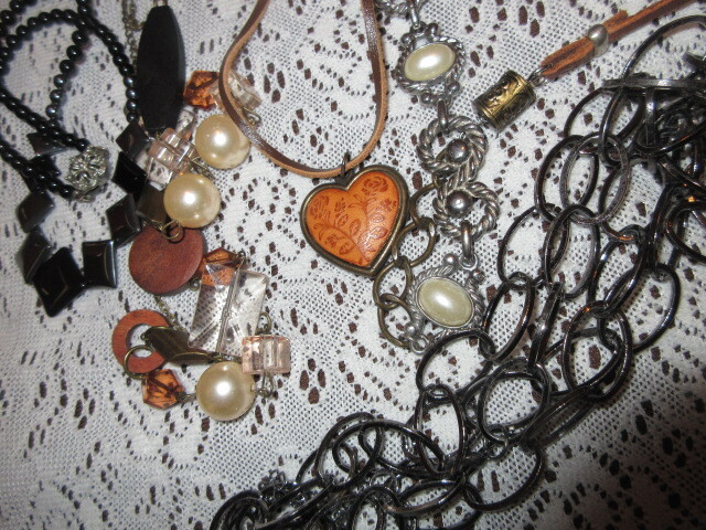 - ■【シルバー系の大き目チェーン&本革ハートに薔薇の焼き印模様ネックレス&その他5点おまとめ】