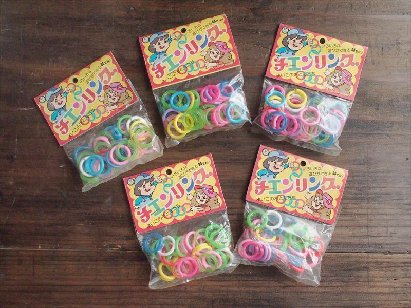 - レトロポップファンシー雑貨*チェンリング・5袋セット☆駄菓子遊び玩具手芸パーツ