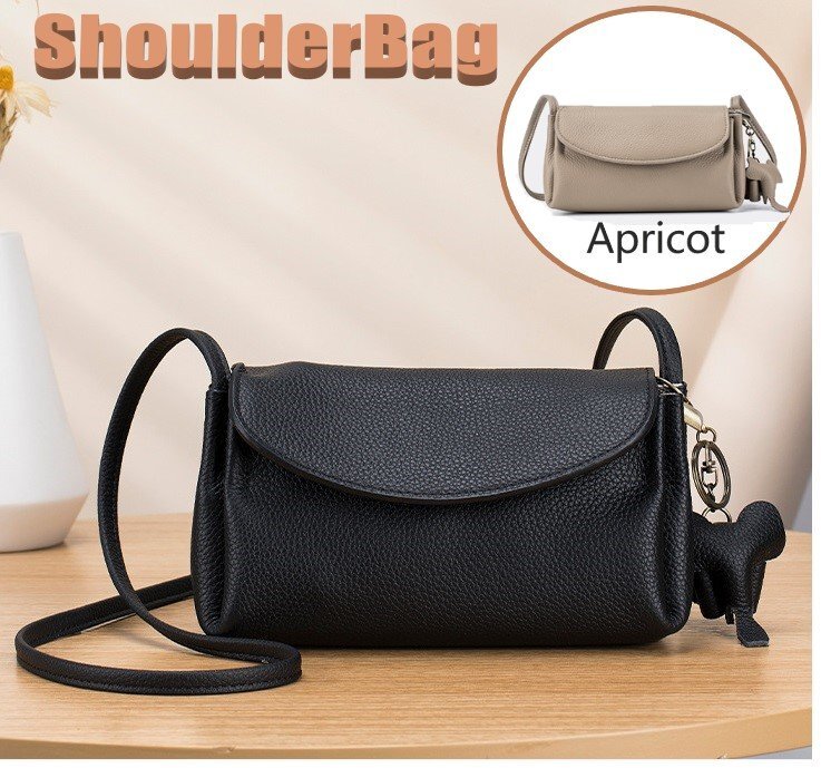- ショルダーバッグ 牛皮 アプリコット レザー シンプル 小物 スマホ カード 鍵 たばこ など n534