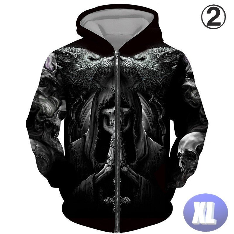 - フード付き ドクロパーカー ジップアップ カラー2 XL トレーナー アウター 防寒 n717