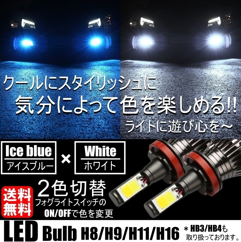 > H8/H9/H11/H16 LED フォグランプ 2色切替 カラーチェンジ 6000kホワイト/8000kアイスブルー LEDバルブ ツインカラー