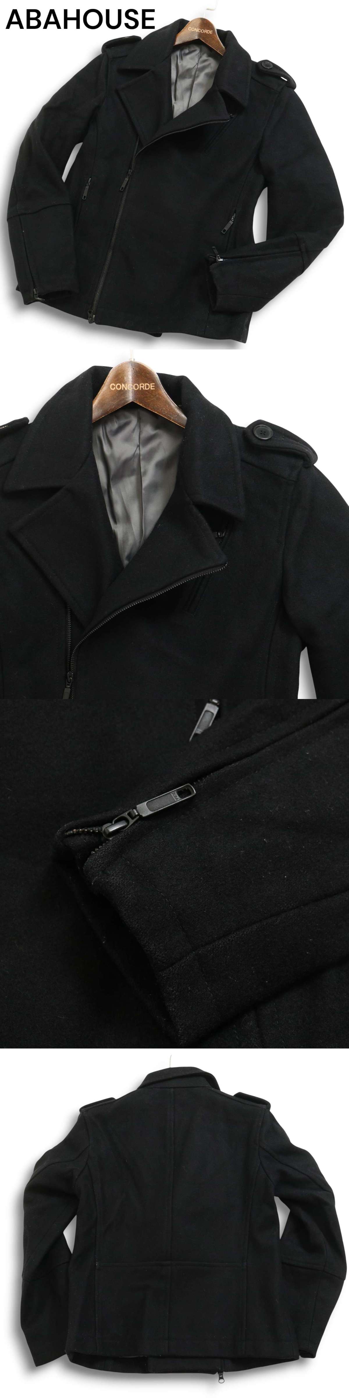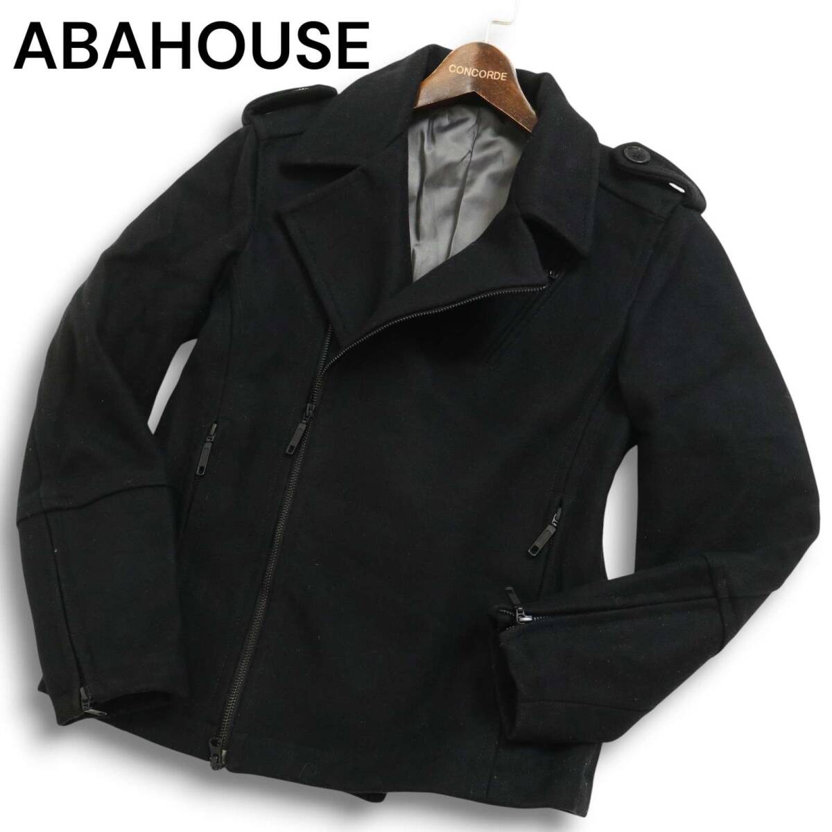 - ABAHOUSE アバハウス 秋冬 メルトン ウール★ ミリタリー ライダース ジャケット ブルゾン Sz.2 メンズ 黒
